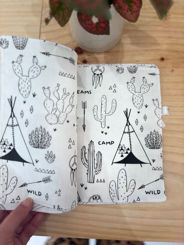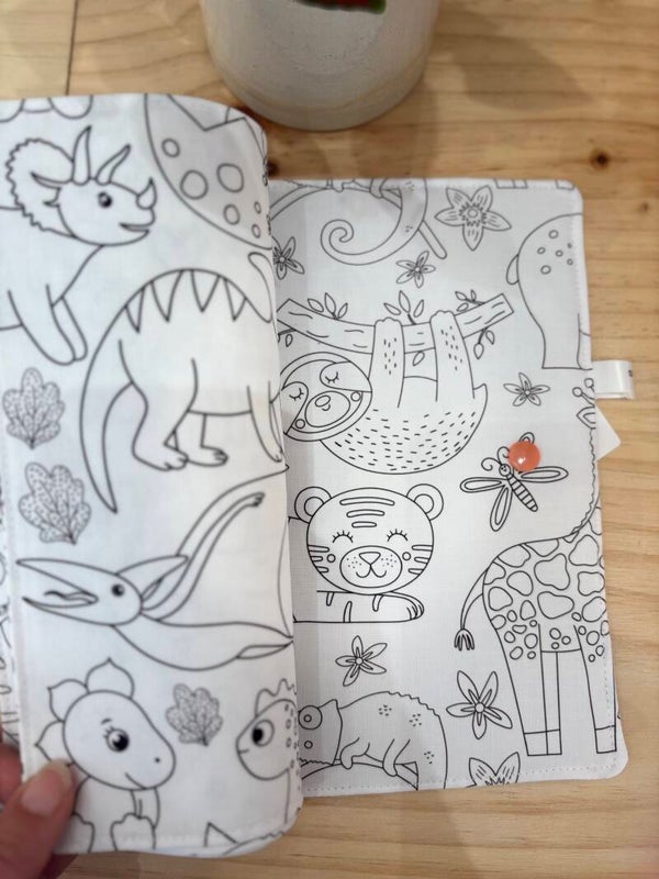 Livre de coloriage lavable, tissu extérieur, 100 % coton, motif savaneUtiliser des feutres lavables à l'eau