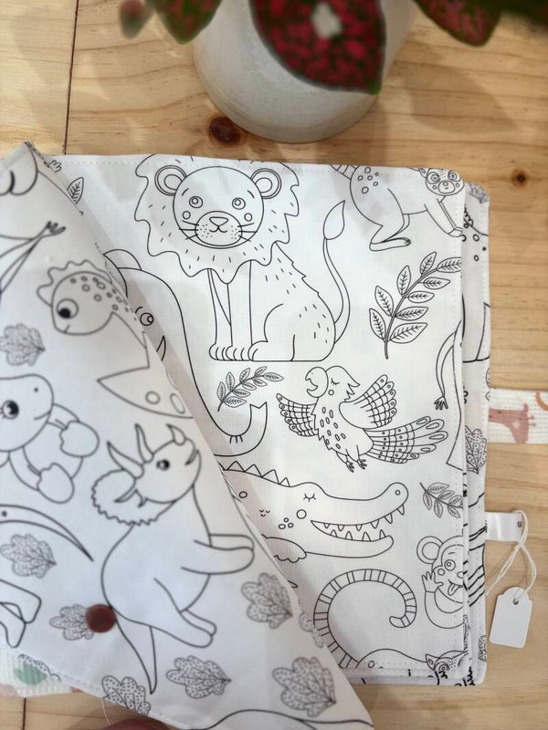 Livre de coloriage lavable, tissu extérieur, 100 % coton, motif animaux