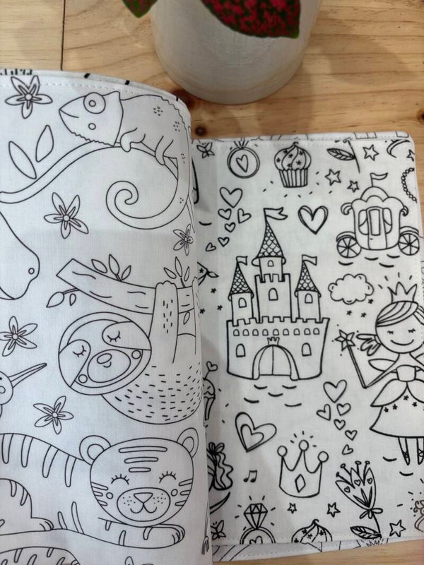 Livre de coloriage lavable, tissu extérieur, 100 % coton, motif renardUtiliser des feutres lavables à l'eau